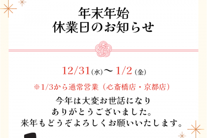 本年もたくさんのお客様にご来店いただき、誠にありがとうございました。 心より御礼申し上げます。 来年もスタッフ一同、より一層のサービス向上を図り、 お客様一人一人に満足していただけるよう努めてまいります。 今後とも末永く […]